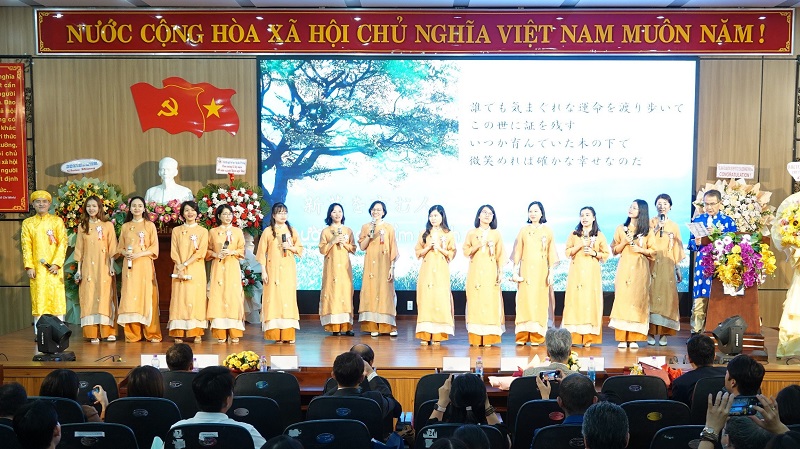 Ghi nhận và đánh giá cao những thành tựu nổi bật mà Khoa đạt được trên chặng đường chinh phục đỉnh cao tri thức ngôn ngữ, văn hóa, Hiệu trưởng Trần Hữu Phúc đã bày tỏ sự tri ân sâu sắc đến các thế hệ thầy cô đã tận tụy và cống hiến. Lãnh đạo Nhà trường cũng gửi lời cảm ơn đến các tổ chức quốc tế và cộng đồng doanh nghiệp Nhật Bản đã hợp tác và hỗ trợ, qua đó đã góp phần xây dựng và thắt chặt thêm mối quan hệ hữu nghị giữa hai nước Việt Nam – Nhật Bản.