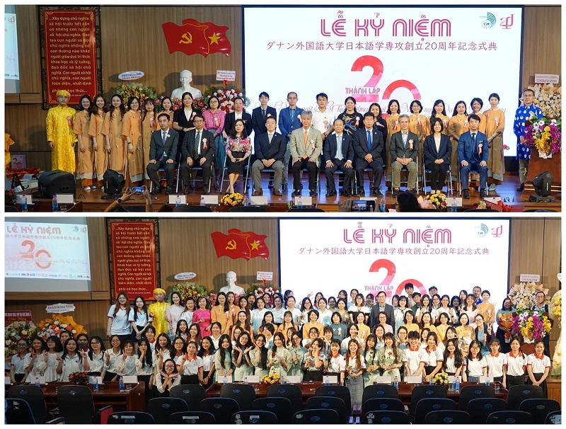 Về phía Trường Đại học Ngoại ngữ, ĐHĐN có TS. Đào Thị Thanh Phượng – Chủ tịch Hội đồng Trường, PGS.TS. Trần Hữu Phúc – Hiệu trưởng, các thầy cô trong Ban Giám hiệu, đại diện lãnh đạo các khoa chuyên môn và phòng chức năng; các thầy, cô nguyên là lãnh đạo Nhà trường và lãnh đạo ngành tiếng Nhật, cán bộ, giảng viên ngành tiếng Nhật qua các thời kỳ, các doanh nghiệp, cựu sinh viên và sinh viên Khoa Ngôn ngữ và Văn hóa Nhật Bản (NN&VHNB).