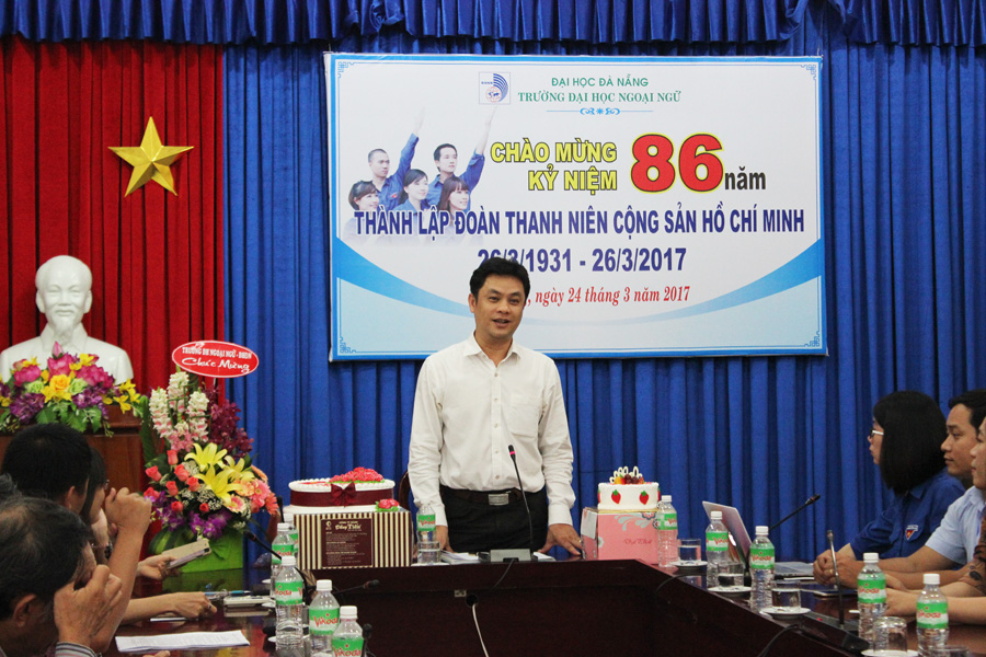 PGS.TS. Nguyễn Văn Long – Phó Hiệu trưởng Nhà trường thay mặt Ban Giám hiệu Nhà trường chúc mừng biểu dương những kết quả đạt được trong công tác Đoàn và phong trào thanh niên Trường Đại học Ngoại ngữ – Đại học Đà Nẵng. PGS.TS. Nguyễn Văn Long kỳ vọng thế hệ cán bộ trẻ hôm nay phải luôn phấn đấu và nỗ lực hết mình để hoàn thành nhiệm vụ được giao bởi bất kỳ thành công nào đều phải trải qua gian khổ, rèn luyện. Cán bộ trẻ cần phải tự tin, dũng cảm hơn trong đấu tranh chống lại những cái xấu, tiêu cực, tin tưởng và phát huy những cái tốt, mặt tích cực để xây dựng Đoàn, góp phần xây dựng Đảng ngày càng trong sạch, vững mạnh.