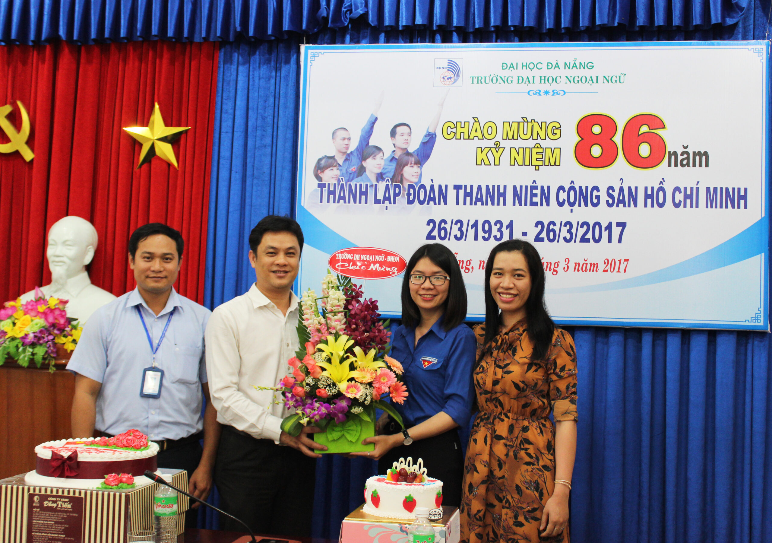 Ban Giám hiệu Nhà trường tặng hoa chúc mừng Đoàn Thanh niên nhân dịp kỷ niệm.