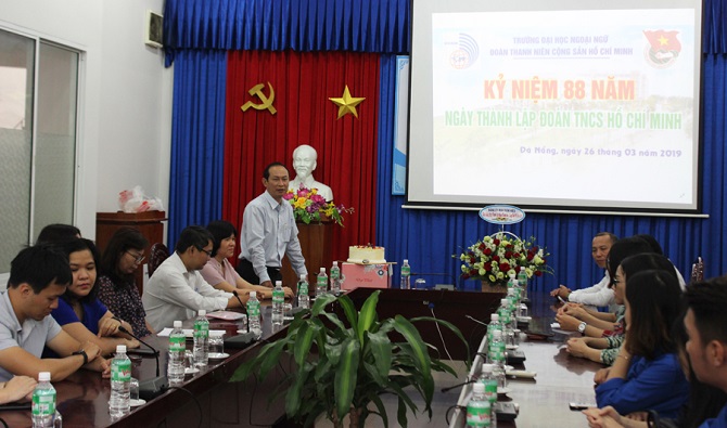 PGS.TS. Trần Hữu Phúc – Hiệu trưởng Nhà trường thay mặt Ban Giám hiệu Nhà trường chúc mừng biểu dương những kết quả đạt được trong công tác Đoàn và phong trào thanh niên Trường Đại học Ngoại ngữ – Đại học Đà Nẵng và kỳ vọng thế hệ cán bộ trẻ hôm nay phải luôn phấn đấu và nỗ lực hết mình để hoàn thành nhiệm vụ được giao góp phần xây dựng Đảng ngày càng trong sạch, vững mạnh.