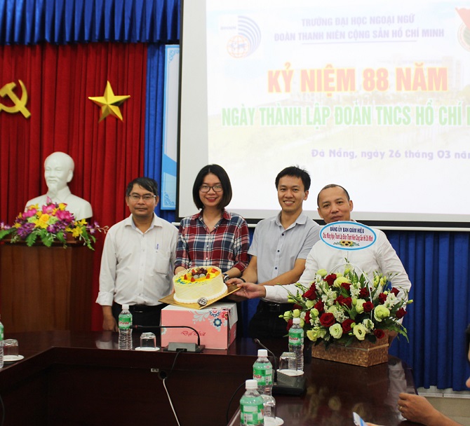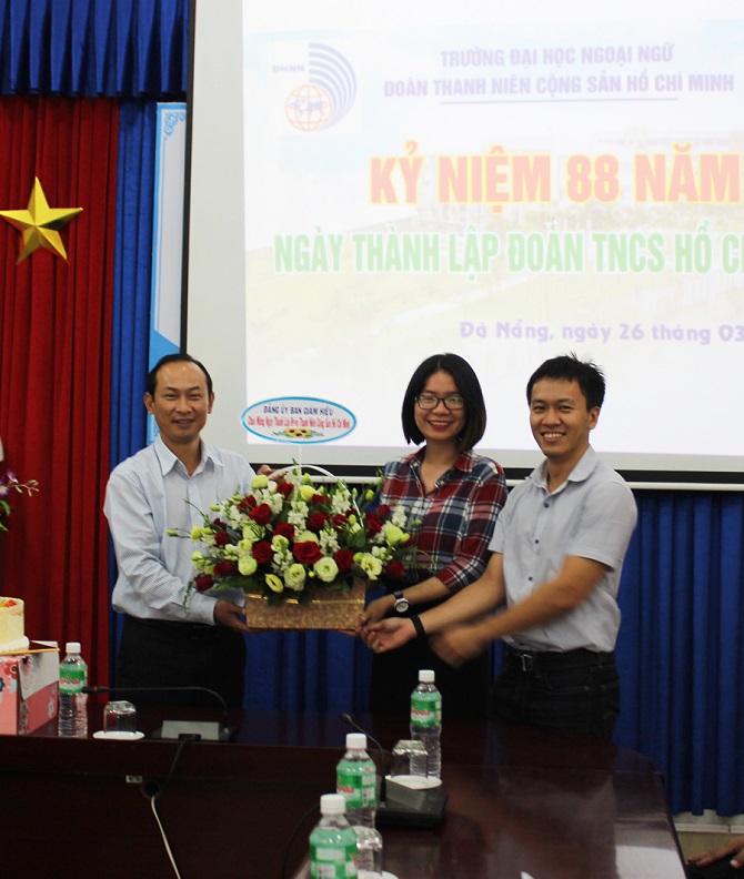 Ban Giám hiệu Nhà trường tặng hoa chúc mừng Đoàn Thanh niên nhân dịp kỷ niệm.