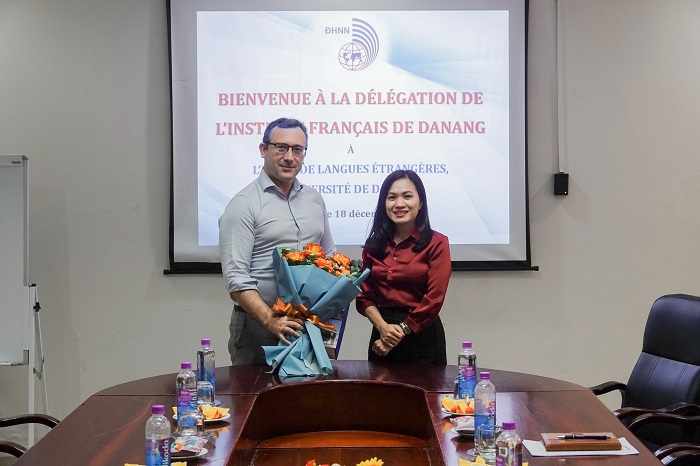 Chia sẻ với đại diện lãnh đạo Nhà trường, ông Samuel Delameziere bày tỏ mong muốn và hy vọng thông qua buổi làm việc hôm nay, các hoạt động hợp tác giữa Viện Pháp tại Đà Nẵng với Trường Đại học Ngoại ngữ, ĐHĐN sẽ tiếp tục được duy trì và tổ chức chặt chẽ trong thời gian tới.