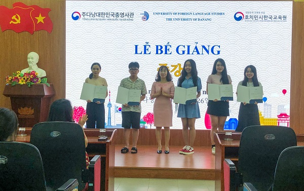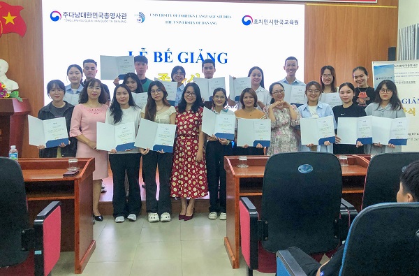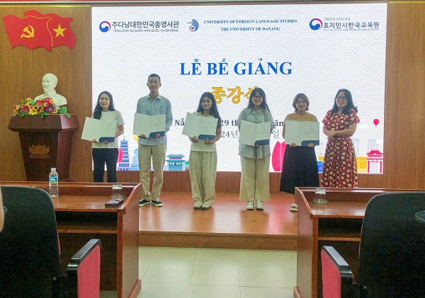 Chương trình giảng dạy Tiếng Hàn hè 2024 do Trung tâm tiếng Hàn Thành phố Hồ Chí Minh thuộc Bộ Giáo dục Hàn Quốc phối hợp với Trường Đại học Ngoại ngữ, Đại học Đà Nẵng tổ chức. Khóa học kéo dài trong 5 tuần, từ ngày 17/6/2024 đến ngày 19/7/2024 đã mang đến cho học viên một góc nhìn mới về ngôn ngữ và văn hóa Hàn Quốc. Tại buổi lễ, TS. Trần Lan Anh trao giấy chứng nhận hoàn thành khóa học Tiếng Hàn Hè 2024 cho các bạn học viên. Đièu này giúp các học viên thêm phấn khởi và có thêm động lực trên con đường chinh phục Tiếng Hàn .