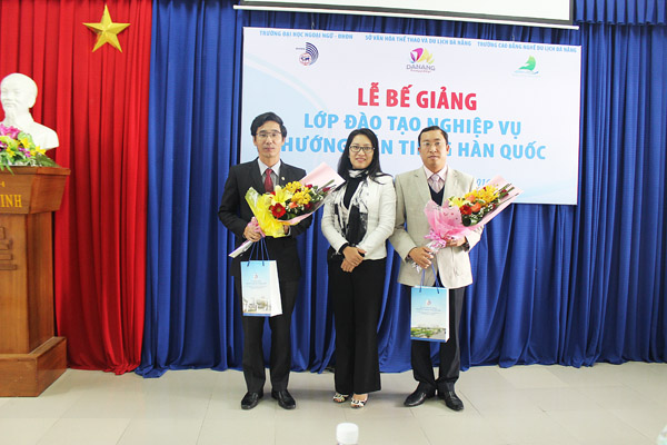 Lớp đào tạo nghiệp vụ hướng dẫn du lịch tiếng Hàn Quốc này là lớp đầu tiên trong chương trình hợp tác giữa Sở Văn hóa, Thể thao và Du lịch thành phố Đà Nẵng, Trường Đại học Ngoại ngữ – Đại học Đà Nẵng và Trường Cao Đẳng nghề Du lịch Đà Nẵng. Trong thời gian tới, chúng tôi sẽ tiếp tục tổ chức thêm nhiều lớp học khác cho sinh viên của tất cả các khoa có đào tạo chuyên ngành ngoại ngữ du lịch của Nhà trường.”- TS. Đào Thị Thanh Phượng  phát biểu thêm.