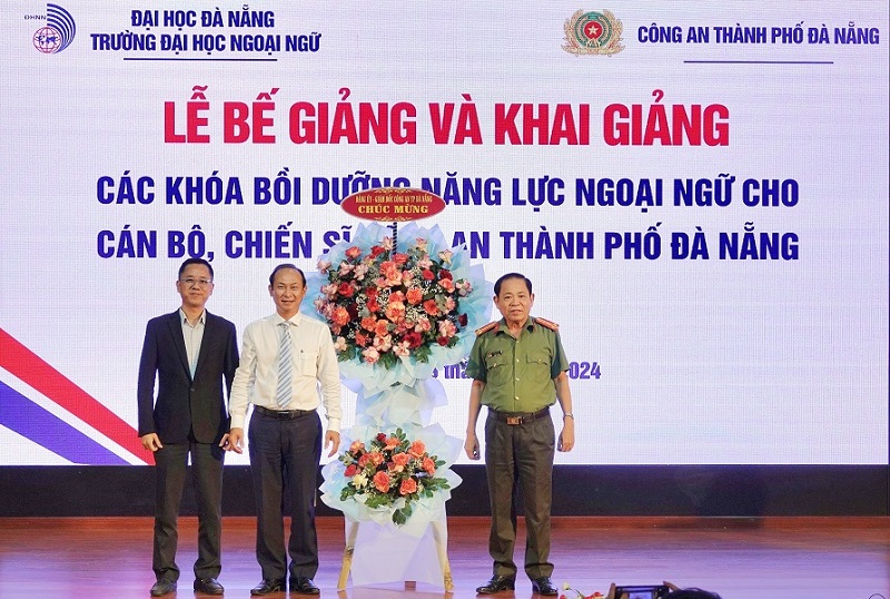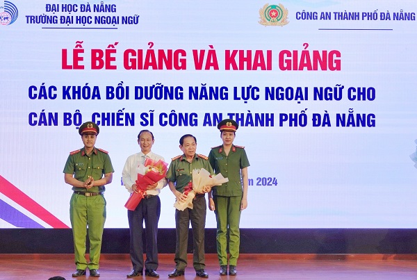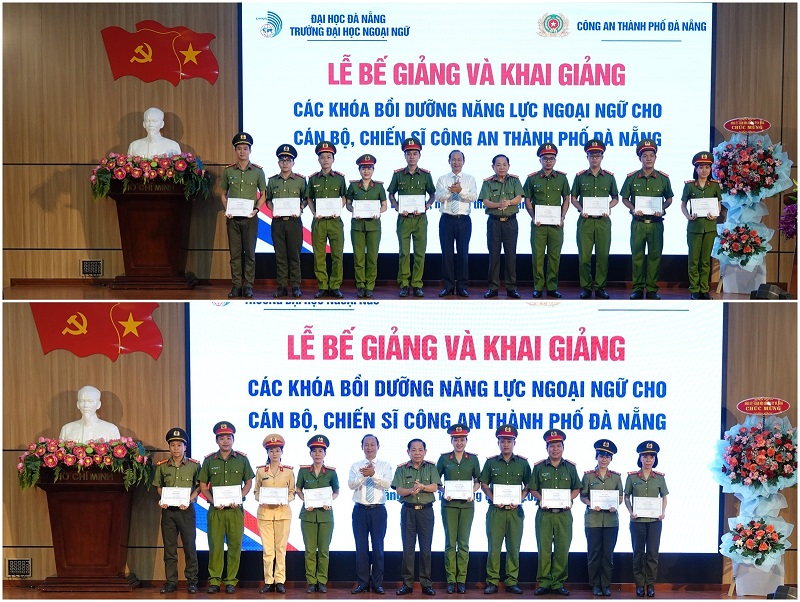 Trường Đại học Ngoại ngữ, ĐHĐN phối hợp với Công an thành phố Đà Nẵng trao chứng nhận cho các cán bộ, chiến sĩ công an đã hoàn thành Khóa bồi dưỡng năng lực ngoại ngữ năm 2023.