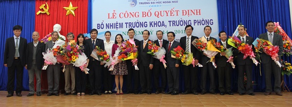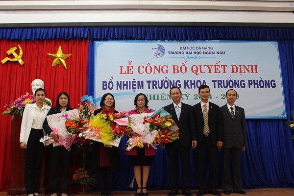 Sau nghi lễ công bố, trao quyết định và tặng hoa chúc mừng của lãnh đạo Giám đốc Đại học Đà Nẵng, Ban Giám hiệu nhà trường, đại diện cán bộ viên chức của các đơn vị trong Trường đã trao tặng những bó hoa tươi thắm và những lời chia vui chúc mừng các tân Trường Khoa, Trưởng Phòng Trường Đại học Ngoại ngữ – Đại học Đà Nẵng.