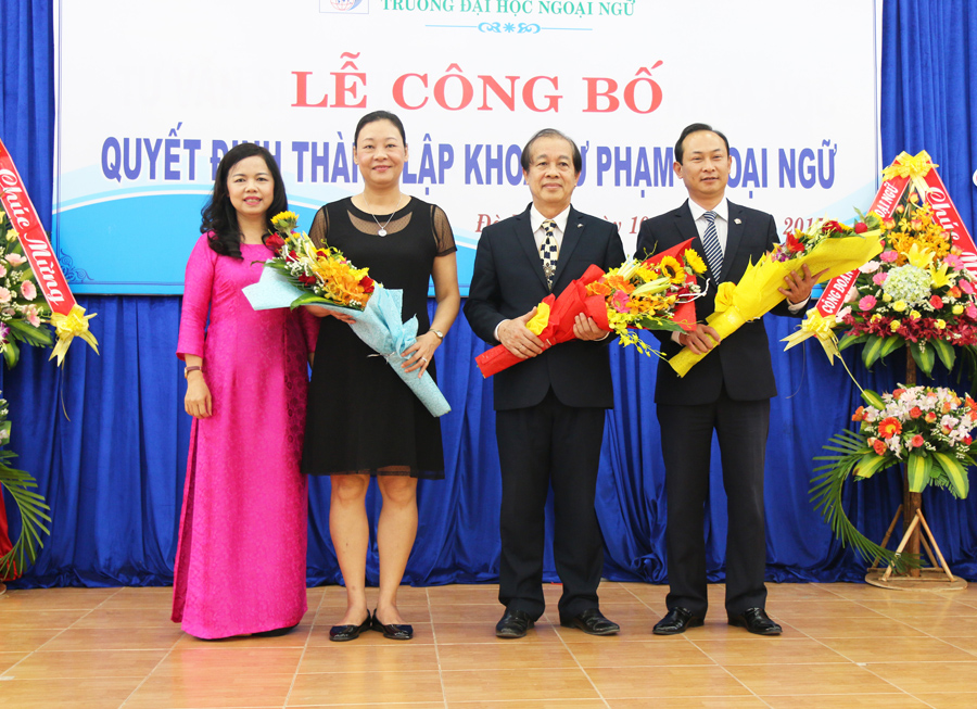 Tặng hoa chúc mừng tập thể Khoa Sư phạm Ngoại ngữ.