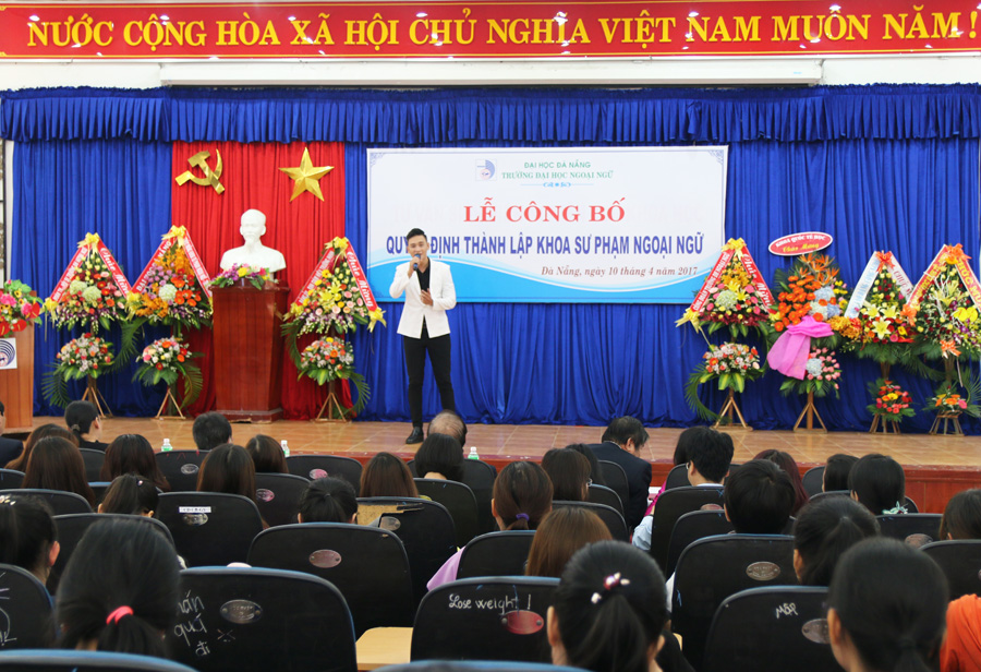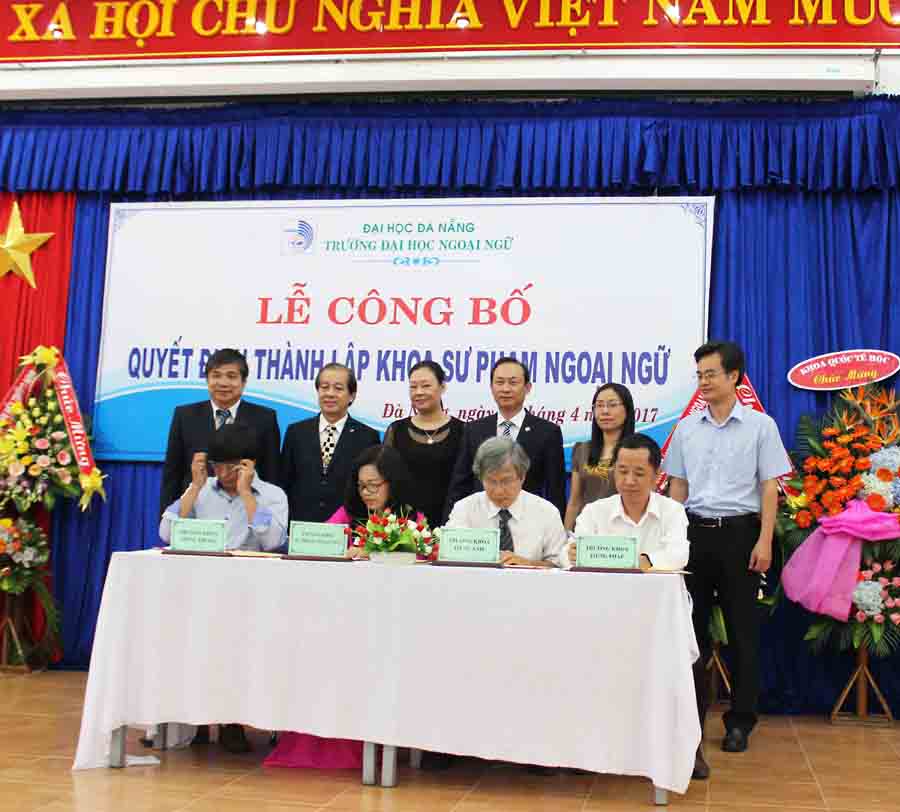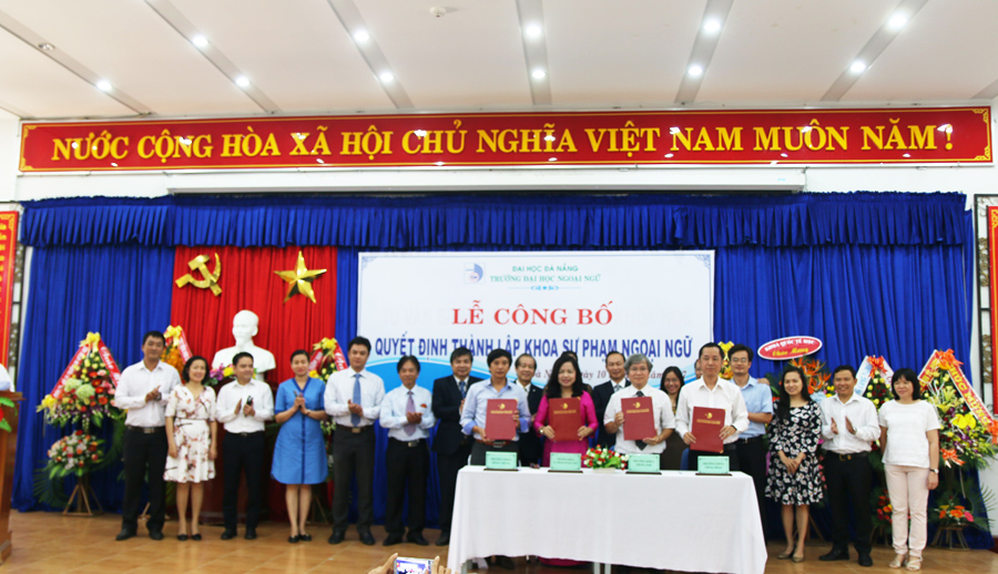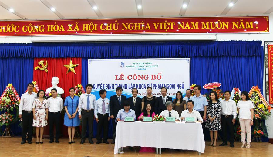 Phát biểu tại Lễ công bố quyết định thành lập khoa Sư phạm Ngoại ngữ, TS. Trần Hữu Phúc – Hiệu trưởng Nhà trường cho biết: Là một cơ sở giáo dục đại học thành viên, Trường Đại học Ngoại ngữ phát triển theo định hướng chung của Đại học Đà Nẵng là phát triển đa ngành, đa lĩnh vực, đào tạo gắn liền với nhu cầu của xã hội. Các ngành Sư phạm tiếp tục ổn định và phát triển mạnh. Điều này thể hiện qua việc tuyển sinh hàng năm luôn đạt và vượt chỉ tiêu đề ra, điểm chuẩn khối ngành sư phạm tại trường luôn có điểm chuẩn ở tốp cao nhất, với nguồn tuyển chất lượng ngay từ đầu vào, những thế hệ cử nhân sư phạm đã cung ứng đội ngũ giáo viên các cấp làm nhiệm vụ giảng dạy ngoại ngữ, tạo nền tảng ngay từ những cấp học đầu tiên, góp phần thực hiện Đề án đổi mới căn bản và toàn diện nền giáo dục và đào tạo. Đặc biệt, Trường Đại học Ngoại ngữ – Đại học Đà Nẵng là cơ sở giáo dục đầu tiên trong cả nước đào tạo chuyên ngành Sư phạm tiếng Anh Tiểu học. Trong đợt khảo sát đánh giá ngoài do Trung tâm Kiểm định, Đại học Quốc gia Hà Nội tiến hành từ ngày 23 đến 2/4/2016 vừa qua, nhiều giáo giáo viên phổ thông, nhà quản lý giáo dục là cựu sinh viên của Nhà trường được mời phỏng vấn cũng như các khảo sát, đánh giá định kỳ của Nhà trường càng chắp cánh niềm tin vào chất lượng đào tạo các ngành sư phạm trong tổng thể hệ thống giáo dục của Nhà trường.