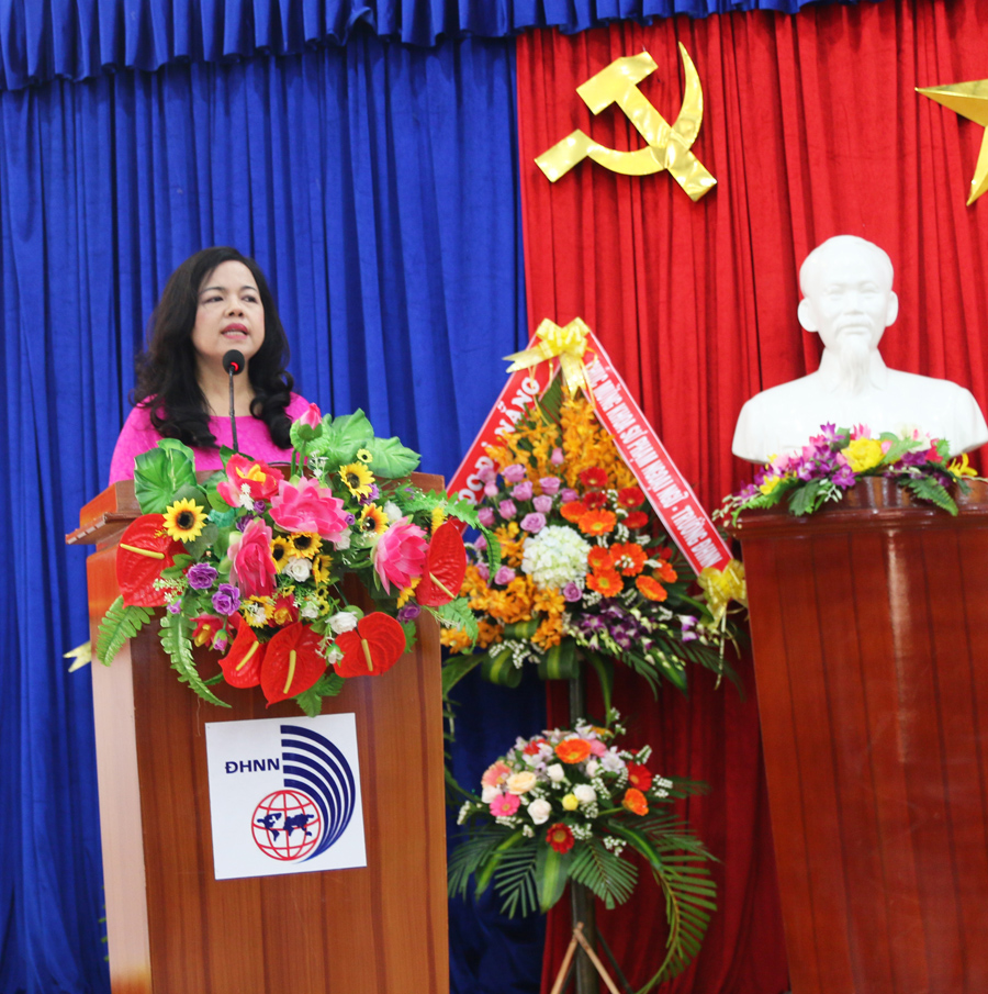 TS. Lê Thị Giao Chi –  Trưởng Khoa Sư phạm Ngoại ngữ phát biểu.
