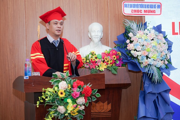 Phát biểu tại buổi Lễ, PGS.TS. Nguyễn Văn Long – Phó Hiệu trưởng cho biết, buổi Lễ diễn ra trong không khí chào mừng kỷ niệm 30 năm thành lập ĐHĐN và hướng đến kỷ niệm 40 năm thành lập Trường Đại học Ngoại ngữ, ĐHĐN. Trong suốt quá trình xây dựng và phát triển, Nhà trường không ngừng mở rộng hợp tác với địa phương và các doanh nghiệp, lấy ý kiến phản hồi của nhà tuyển dụng để việc đào tạo thạc sĩ gắn liền với nhu cầu của xã hội. Bên cạnh đó, nhằm nâng cao chất lượng đào tạo, Trường Đại học Ngoại ngữ, ĐHĐN đã có chủ trương và tích cực ứng dụng công nghệ thông tin trong dạy và học.