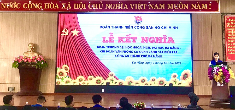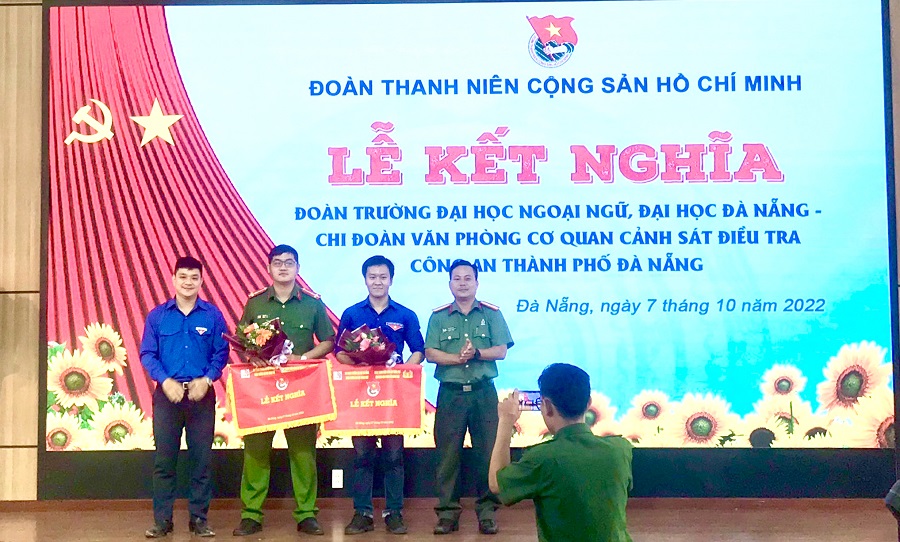 Phát biểu tại Buổi lễ đồng chí Trung tá Bùi Thanh Tuấn – Chi uỷ viên, Đội trưởng Đội điều tra án và thẩm định hồ sơ tố tụng, Công an Thành phố Đà Nẵng Đà Nẵng và đồng chí Đỗ Lê Hưng Toàn – Chủ tịch Hội Sinh viên, Phó Bí thư Đoàn Thanh niên Đại học Đà Nẵng đã gửi lời chúc mừng Chương trình kết nghĩa và bắt đầu thiết lập mối quan hệ tốt đẹp giữa Đoàn trường Đại học Ngoại Ngữ Đà Nẵng và Chi đoàn Văn phòng Cơ quan Cảnh sát điều tra Công an thành phố Đà Nẵng và mong muốn đây sẽ là tiền đề để hai đơn vị có thêm những hoạt động ý nghĩa, thiết thực cho đoàn viên thanh niên của đôi bên, cũng như phối hợp tổ chức thêm được nhiều hoạt động mang đến giá trị tốt đẹp cho xã hội.
