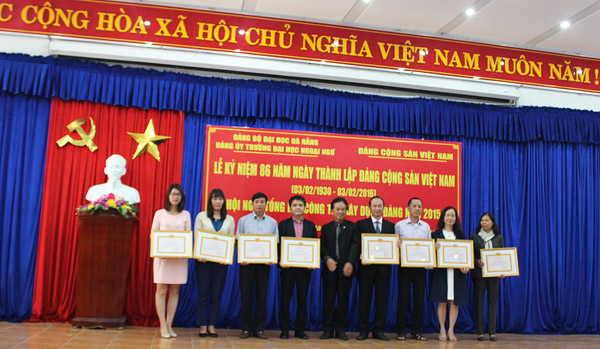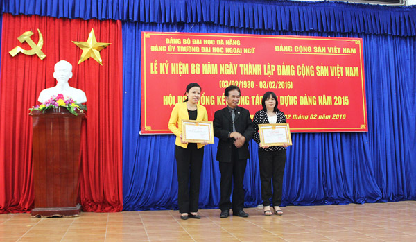 Cũng tại Hội nghị, Đảng ủy Trường Đại học Ngoại ngữ đã trao Giấy khen cho Chi bộ Trung – Nhật – Hàn- Thái và Chi bộ Tổ chức – Hành chính (Chi bộ trong sạch vững mạnh năm 2015), Chi bộ Trung- Nhật – Hàn – Thái, (Chi bộ trong sạch vững mạnh tiêu biểu năm 2015) và 14 đảng viên hoàn thành xuất sắc nhiệm vụ trong năm 2015 gồm các đồng chí: Trần Hữu Phúc ,Trần Quang Hải, Dương Quốc Cường, Nguyễn Văn Long, Đào Thị Thanh Phượng, Lưu Quý Khương, Tăng Thanh Mai, Nguyễn Hữu Bình, Hoàng Phước Thu Uyên, Nguyễn Hồng Thanh, Ngô Quang Vinh, Trần Thị Thùy Hương, Trần Thị Thùy Oanh, Hồ Thị Thục Nhi.