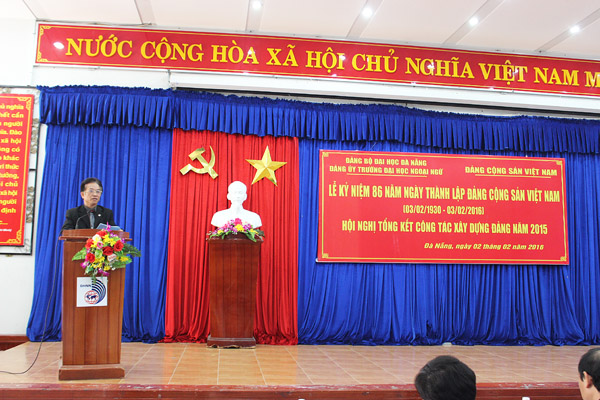 Thay mặt cho Đảng ủy Đại học Đà Nẵng, đồng chí Trần Văn Nam đã đánh giá cao những thành tích mà Đảng bộ Trường Đại học Ngoại ngữ đã đạt được trong năm 2015, đề nghị Đảng bộ Nhà trường tiếp tục phát huy sức mạnh của toàn Đảng bộ để thực hiện thành công kế hoạch công tác trong năm 2016.