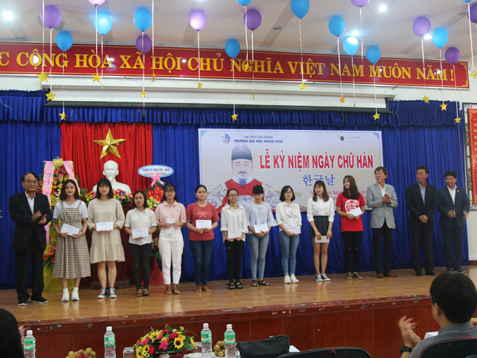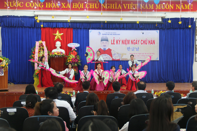 Phát biểu tại sự kiện, TS. Đào Thị Thanh Phượng -Phó Hiệu trưởng Nhà trường cho biết: “Quỹ Sejong Hàn Quốc là một đại diện cơ quan chính phủ Hàn Quốc thuộc Bộ Văn hóa thể thao và Du lịch Hàn Quốc được thành lập từ năm 2012 với mục đích quảng bá ngôn ngữ và văn hóa Hàn Quốc ra thế giới. Hiện nay, số lượng du khách Hàn Quốc cũng như số lượng doanh nghiệp Hàn Quốc đầu tư vào Đà Nẵng và miền Trung Việt Nam đang tăng một cách nhanh chóng. Chính vì thế, Trường Đại học Ngoại ngữ – Đại học Đà Nẵng đã phối hợp với quỹ Sejong Hàn Quốc chính thức tiến hành dự án Sejong từ ngày 01/7/2018 nhằm mục đích tạo nhiều cơ hội hơn nữa cho người dân Đà Nẵng và các tỉnh thành miền Trung Việt Nam có thể tiếp cận với ngôn ngữ và văn hóa Hàn Quốc. Ngoài hoạt động giảng dạy tiếng Hàn, dự án cũng thực hiện nhiều hoạt động để quảng bá văn hóa Hàn Quốc. Hy vọng thông qua buổi lễ, các học viên Sejong cũng như các bạn sinh viên ngành tiếng Hàn có thể hiểu hơn về tiếng Hàn và văn hóa Hàn Quốc”.