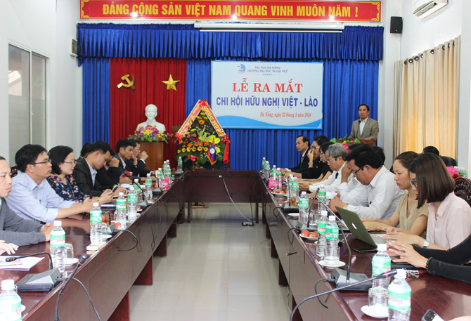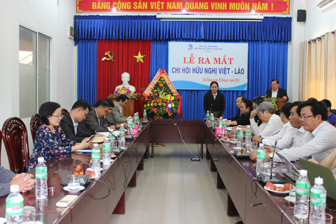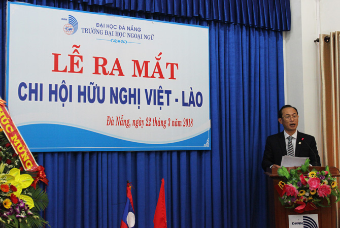 Phát biểu khai mạc buổi lễ, TS. Trần Hữu Phúc – Hiệu trưởng Nhà trường cho hay: “Việc thành lập Chi hội hữu nghị Việt – Lào Trường Đại học Ngoại ngữ là sự kiện có ý nghĩa, nhất là trong bối cảnh cả hai nước vừa kỷ niệm 55 năm ngày thiết lập quan hệ ngoại giao và 40 năm ngày ký Hiệp ước hữu nghị và hợp tác, cùng với các chi hội hữu nghị đã được thành lập và sẽ thành lập trong thời gian đến, tiếp tục thực hiện sứ mạng của Nhà trường trong việc củng cố và phát triển tình hữu nghị giữa Việt Nam và các dân tộc trên thế giới cũng như sự gắn kết giữa thành phố Đà Nẵng với các nước, các địa phương trong khu vực và thế giới. Đảng ủy, Hội đồng trường, Ban Giám hiệu Nhà trường đề nghị Chi hội hữu nghị Việt – Lào xây dựng chương trình hoạt động thiết thực, hiệu quả, ý nghĩa, phù hợp với chương trình hoạt động của Nhà trường và kế hoạch của Hội hữu nghị Việt – Lào thành phố Đà Nẵng.”