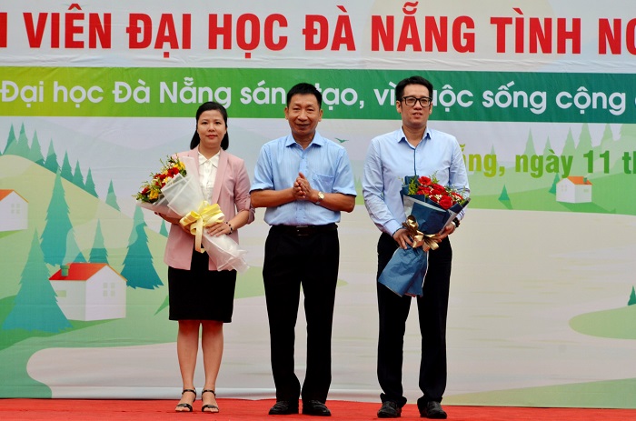 Nhân dịp này, Phó Giám đốc ĐHĐN Lê Thành Bắc trân trọng cám ơn, tặng hoa ghi nhận sự hỗ trợ, đồng hành của các đơn vị tài trợ (Ngân hàng Đầu tư và Phát triển Việt Nam BIDV Chi nhánh Đà Nẵng, Ngân hàng Công thương Vietinbank Chi nhánh Đà Nẵng), sự quan tâm, phối hợp chỉ đạo của các cấp lãnh đạo ĐHĐN và các trường ĐH thành viên, đơn vị đào tạo trực thuộc đối với hoạt động tình nguyện của tuổi trẻ ĐHĐN.