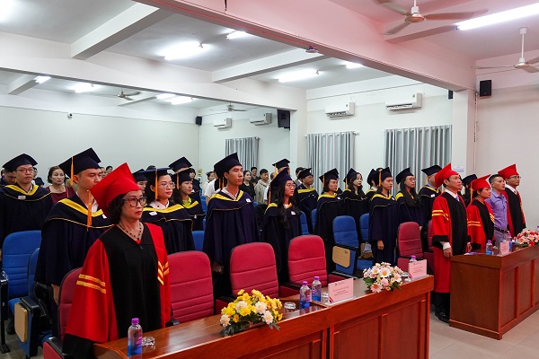 Đại diện cho các tân cử nhân, học viên Nguyễn Hoài Thu, lớp 21BHTC02 đã phát biểu bày tỏ niềm vinh dự và hạnh phúc khi đã hoàn thành chương trình học, đồng thời thể hiện lòng tri ân sâu sắc đến tập thể lãnh đạo Nhà trường và giảng viên đã tận tình hỗ trợ và truyền đạt kiến thức trong suốt thời gian qua.