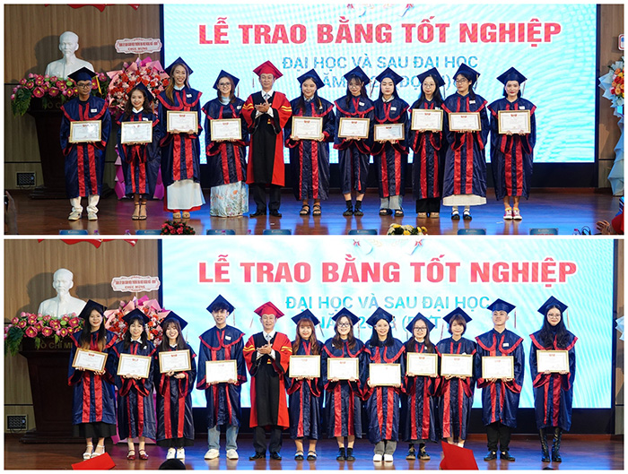 Phát biểu tại buổi Lễ, PGS.TS. Trần Hữu Phúc – Hiệu trưởng Nhà trường chúc mừng các nghiên cứu sinh, học viên và tân cử nhân đã phấn đấu và nỗ lực không ngừng để hoàn thành xuất sắc nhiệm vụ học tập, nghiên cứu, đóng góp chung vào thành quả của Nhà trường và sẵn sàng hòa mình vào công cuộc xây dựng, phát triển đất nước. Nhân dịp này, Hiệu trưởng Trần Hữu Phúc cũng trân trọng gửi lời tri ân sâu sắc đến các thầy cô giáo, các chuyên gia và tình nguyện viên nước vì sự tận tâm và đầy trách nhiệm trong công tác giảng dạy; của quý cô giáo, thầy giáo, các chuyên gia, tình nguyện viên nước ngoài; tập thể cán bộ, viên chức quản lý và phục vụ đào tạo đã năng nổ và nhiệt tình; doanh nghiệp và phụ huynh đã quan tâm phối hợp và hỗ trợ.