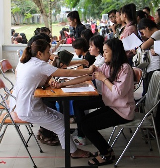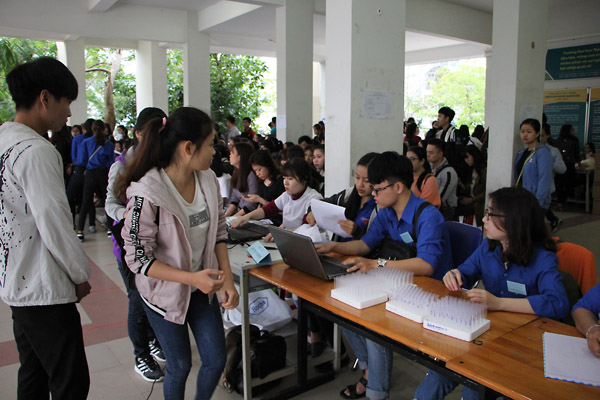 Ngay từ sáng sớm, đông đảo sinh viên Nhà trường đã xếp thành những hàng dài chờ đăng ký hiến máu. Trong những năm qua, hiến máu nhân đạo là hoạt động luôn nhận được sự quan tâm sâu sắc của Đoàn Trường cũng như của tuổi trẻ Trường Đại học Ngoại ngữ – Đại học Đà Nẵng.