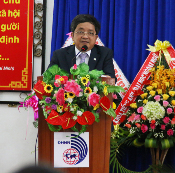 Hiệu trưởng Trường Đại học Ngoại ngữ – ĐHĐN tặng hoa cho lãnh đạo Bộ Giáo dục & Đào tạo, Đại học Đà Nẵng và Tổ chức Đại học Pháp ngữ.