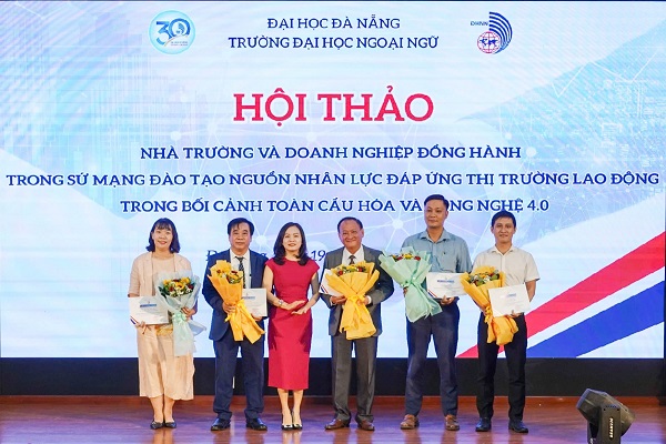 Cũng tại Hội thảo, 4 doanh nghiệp đã dành tặng các suất học bổng hỗ trợ cho sinh viên Khoa Tiếng Anh chuyên ngành của Trường Đại học Ngoại ngữ, ĐHĐN gồm Công ty TNHH Blue Eagle, Công ty TNHH Khởi Nguyên Water, Công ty TNHH Dịch vụ giao nhận và vận tải Cát Tường và Công ty CP Kho vận Liên Chiểu Xanh.