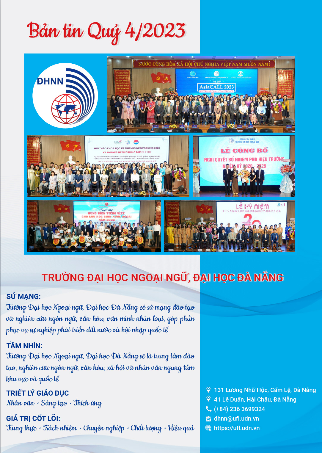 Trong 02 ngày, ngày 11 và 12/11/2023, Trường Đại học Ngoại ngữ, Đại học Đà Nẵng đã tổ chức thành công Chương trình Đối thoại Thanh niên 2023 (Youth Dialogue in Da Nang 2023). Chương trình đã thu hút các em học sinh, sinh viên đến từ các trường phổ thông, cao đẳng và đại học tham gia trình bày và đề xuất các giải pháp cho các vấn đề an ninh phi truyền thống đang tiếp diễn tại khu vực ASEAN như: biến đổi khí hậu, an ninh nguồn nước, an ninh lương thực, an ninh mạng. Chương trình là hoạt động nằm trong chuỗi sự kiện thường niên được tổ chức định kỳ 02 năm một lần, nhằm mang đến sân chơi học thuật nhiều kiến thức và những trải nghiệm quý giá.