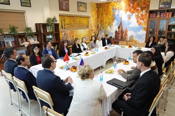 Sáng ngày 21/12/2023, Ngài Bezdetko Gennady Stepanovich – Đại sứ Đặc mệnh Toàn quyền Liên bang Nga tại Việt Nam đã đến thăm và làm việc với lãnh đạo, cán bộ và giảng viên Trường Đại học Ngoại ngữ, Đại học Đà Nẵng. PGS.TS. Trần Hữu Phúc – Hiệu trưởng Nhà trường đã đón tiếp và chủ trì buổi làm việc. Phát biểu tại buổi làm việc, PGS.TS. Trần Hữu Phúc bày tỏ vui mừng và vinh dự khi được tiếp đón Ngài Đại sứ Bezdetko Gennady Stepanovich đến thăm và làm việc, qua đó mang lại nguồn năng lượng mới cho cán bộ giảng viên và sinh viên Trường Đại học Ngoại ngữ, ĐHĐN nói chung và Khoa Tiếng Nga nói riêng. Nhân dịp này, Hiệu trưởng Trần Hữu Phúc bày tỏ sự ghi nhận và tri ân sự hỗ trợ của Đại sứ quán Liên bang Nga tại Việt Nam và đặc biệt là Tổng Lãnh sự quán Liên bang Nga tại thành phố Đà Nẵng đối với Trường Đại học Ngoại ngữ, ĐHĐN và Khoa Tiếng Nga trong suốt thời gian qua.