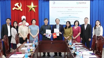 Ngày 01/12/2023, PGS.TS. Trần Hữu Phúc – Hiệu trưởng Trường Đại học Ngoại ngữ, Đại học Đà Nẵng và Ông Jo Kyungsun – Giám đốc Viện Đào tạo Ngôn ngữ, Đại học Quốc gia Chonnam, Hàn Quốc đã đồng chủ trì buổi làm việc và ký kết Biên bản Ghi nhớ hợp tác giữa hai bên. Phát biểu tại buổi làm việc, PGS.TS. Trần Hữu Phúc – Hiệu trưởng Trường Đại học Ngoại ngữ, ĐHĐN bày tỏ vui mừng khi được chào đón đoàn công tác của Viện Đào tạo Ngôn ngữ, Đại học Quốc gia Chonnam, Hàn Quốc đến thăm, làm việc và ký kết. Trên cơ sở Biên bản ghi nhớ được ký kết, PGS.TS. Trần Hữu Phúc cũng đề xuất một số nội dung hợp tác để hai bên có thể triển khai trong thời gian tới như: đồng tham gia các dự án nghiên cứu chung, phát triển và công bố các nghiên cứu, xuất bản các chương trình, tài liệu, tạp chí; trao đổi giảng viên, tiếp nhận giảng viên, chuyên gia nghiên cứu của Viện và Đại học đến giảng dạy hoặc nghiên cứu; tổ chức chương trình thực tập ngắn hạn cho sinh viên; trao đổi hợp tác một số ngành, chương trình đào tạo tương đồng giữa hai bên