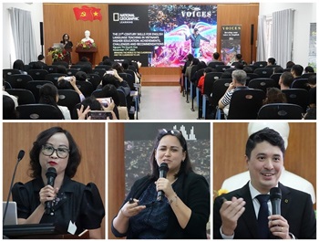 Ngày 17/11/2023, Trường Đại học Ngoại ngữ, Đại học Đà Nẵng phối hợp với Nhà xuất bản National Geographic Learning tổ chức buổi nói chuyện chuyên đề “Preparing Students for Global Communication and the Workplace”. Buổi nói chuyện chuyên đề diễn ra trong không khí đầy hứng khởi, chia sẻ những thông tin hữu ích giúp nâng cao khả năng giao tiếp của sinh viên. Phần trình bày của các diễn giả khách mời là những chuyên gia trong lĩnh vực đã giúp sinh viên hiểu rõ hơn tầm quan trọng của việc phát triển kỹ năng mềm trong bối cảnh hiện nay, nhất là kỹ năng giao tiếp tiếng Anh trong sự đa dạng văn hóa và môi trường làm việc toàn cầu đang ngày càng trở nên phổ biến.