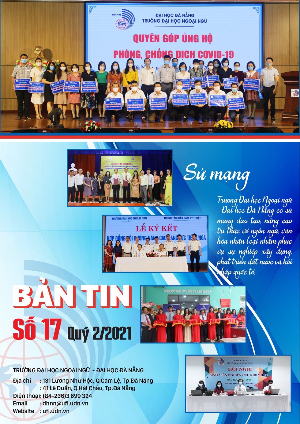 Hưởng ứng lời kêu gọi của Chính phủ, Mặt trận Tổ quốc Việt Nam, Thư kêu gọi của Liên tịch Lãnh đạo Trường Đại học Ngoại ngữ, ĐHĐN, sáng ngày 14/6/2021 Trường Đại học Ngoại ngữ – Đại học Đà Nẵng đã tổ chức Lễ phát động quyên góp ủng hộ công tác phòng, chống dịch COVID-19 năm 2021.