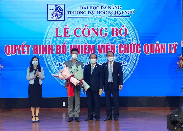 Sáng ngày 23/02/2022, Trường Đại học Ngoại ngữ – Đại học Đà Nẵng tổ chức “Lễ công bố các quyết định bổ nhiệm nhân sự các Khoa, Phòng Trường Đại học Ngoại ngữ – Đại học Đà Nẵng” nhằm kiện toàn một số vị trí quản lý các Khoa, Phòng. Tại buổi Lễ, Nhà trường đã đã tiến hành quy trình bổ nhiệm nhân sự Khoa tiếng Anh, Khoa tiếng Pháp, Khoa tiếng Nga, Phòng Cơ sở -Vật chất, Phòng Khảo thí & Đảm bảo Chất lượng Giáo dục và Phòng Tổ chức – Hành chính.