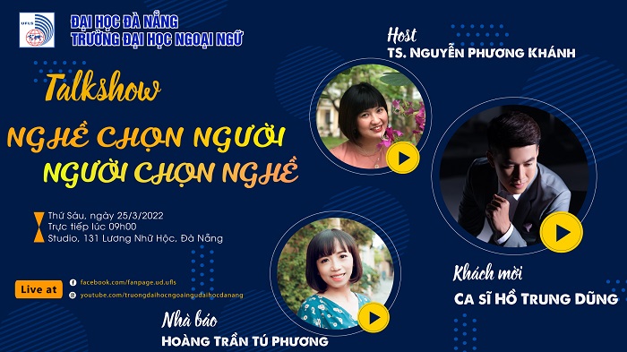 Ngày 25/3/2022, Trường Đại học Ngoại ngữ – Đại học Đà Nẵng đã tổ chức Talkshow hướng nghiệp với chủ đề “Người chọn nghề &Nghề chọn người”. Chương trình được diễn ra tại Studio và Livestream trên Fanpage của Nhà trường.