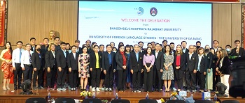 Ngày 26/9/2022, Trường Đại học Ngoại ngữ – Đại học Đà Nẵng đón tiếp Đoàn Đại biểu với hơn 45 lãnh đạo, cán bộ và giảng viên Trường Đại học Bansomdejchaopraya Rajabhat, Thái Lan (BSRU) đến tham quan và làm việc tại Trường. Đón tiếp đoàn có TS. Huỳnh Ngọc Mai Kha – Phó Hiệu Trưởng Nhà trường cùng các Thầy, Cô là lãnh đạo Phòng Khoa học và Hợp tác Quốc tế, Phòng Đào tạo, Khoa tiếng Anh, Khoa tiếng Anh chuyên ngành, Khoa Quốc tế học và các giảng viên Tổ tiếng Thái Lan. Buổi đón tiếp được tổ chức thành 2 phiên: phiên đón tiếp và phiên làm việc.