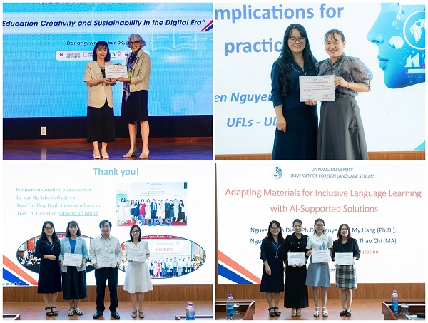 Các báo cáo đến từ các giảng viên, nhà nghiên cứu của Trường Đại học Ngoại ngữ, ĐHĐN gồm “Adapting Materials for Inclusive Language Learning with AI-Supported Solutions” của TS. Nguyễn Bích Diệu, TS. Nguyễn Thị Mỹ Hằng, ThS. Nguyễn Thị Lan Anh và ThS. Nguyễn Đoàn Thảo Chi – Trường Đại học Ngoại ngữ, ĐHĐN; “Teachers’ conceptions of online teaching and their implications for students’ learning” của TS. Nguyễn Nữ Thùy Uyên; “The Innovative methods of improving the training quality: A case at FESP – UFLS” của ThS. Lê Văn Bá, TS. Trần Thị Thùy Oanh và ThS. Trần Thị Diệu Hiền.