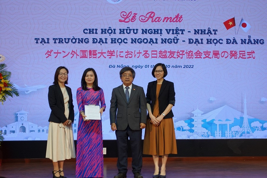 Tại buổi lễ, ông Võ Như Thắng – Phó Chủ tịch Hội Hữu nghị Việt Nam – Nhật Bản tại thành phố Đà Nẵng đã công bố Quyết định số 27/QĐ-VN ngày 27/9/2022 của Hội Hữu Nghị Việt Nam – Nhật Bản tại thành phố Đà Nẵng về việc thành lập Chi hội Hữu nghị Việt Nam – Nhật Bản tại Trường Đại học Ngoại ngữ, ĐHĐN. Theo Quyết định, Chi hội gồm có TS. Huỳnh Ngọc Mai Kha – Phó Hiệu trưởng Nhà trường, Chi hội trưởng; TS. Nguyễn Thị Như Ý – Trưởng khoa, Khoa Ngôn ngữ và Văn hóa Nhật Bản, Chi hội phó; các ủy viên Chi hội gồm ThS. Nguyễn Thị Hồng Ngọc, bà Nguyễn Thủy Bảo Anh, ThS. Nguyễn Thị Sao Mai, ThS. Phạm Thị Thu Trang, ThS. Dương Quỳnh Nga, ThS. Hồ Thị Hà Giang, ThS. Phạm Thị Thanh Thảo, ThS. Dư Thoại Tú, ThS. Nguyễn Thị Ngọc Liên và ThS. Phạm Thị Linh Chi.