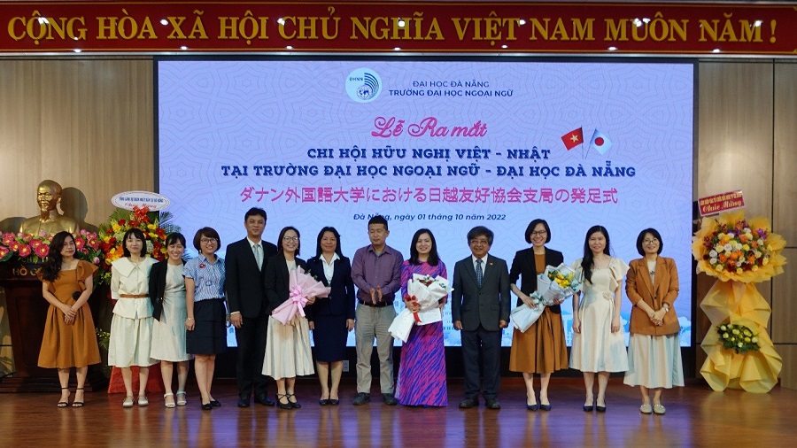 Tặng hoa chúc mừng và ra mắt Chi hội Hữu nghị Việt – Nhật tại Trường Đại học Ngoại ngữ – ĐHĐN