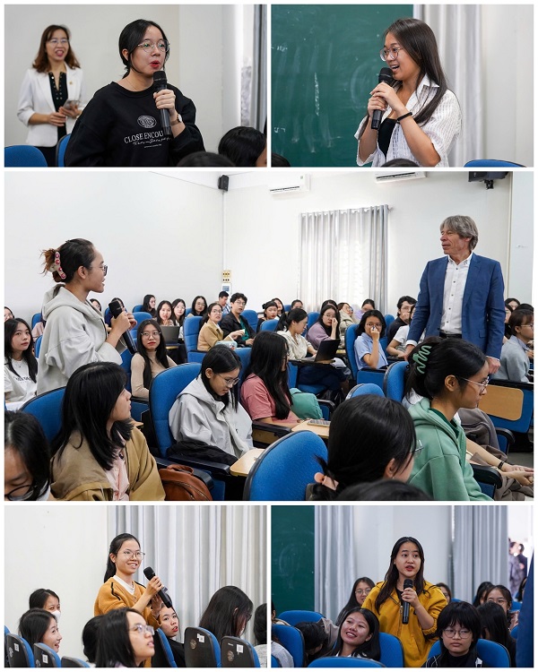 Sinh viên hào hứng đặt câu hỏi giao lưu với diễn giả