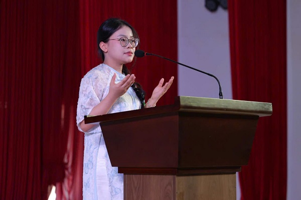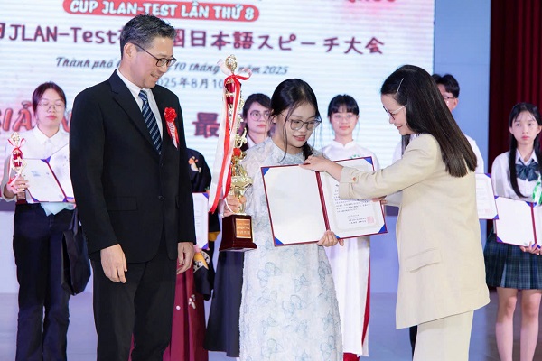 Cuộc thi diễn ra sáng 10/8 tại Trường Đại học Ngoại ngữ Huế, quy tụ 16 thí sinh tiêu biểu từ các cơ sở đào tạo tiếng Nhật trên toàn quốc. Bằng vốn ngôn ngữ vững vàng và tư duy sáng tạo, Thảo Nguyên đã thuyết phục ban giám khảo với thông điệp sâu sắc: “Việc sử dụng AI không phải để trốn tránh việc suy nghĩ, mà là để suy nghĩ sâu hơn. Tôi luôn viết trước bằng sức mình, rồi mới nhờ AI góp ý.”