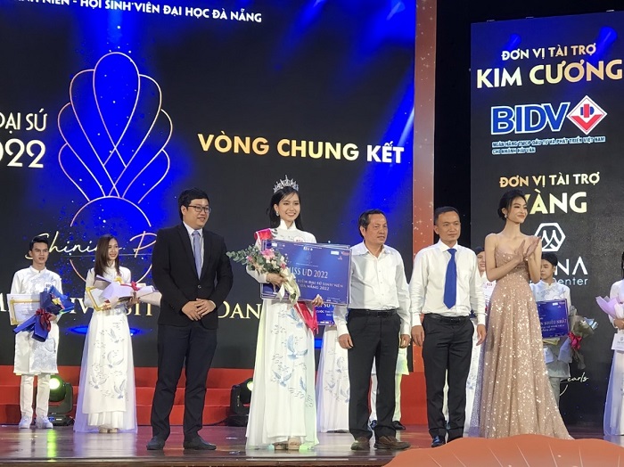 Lãnh đạo ĐHĐN trao giải Miss UD-2022 cho Trần Thị Hồng Linh – sinh viên Trường Đại học Ngoại ngữ