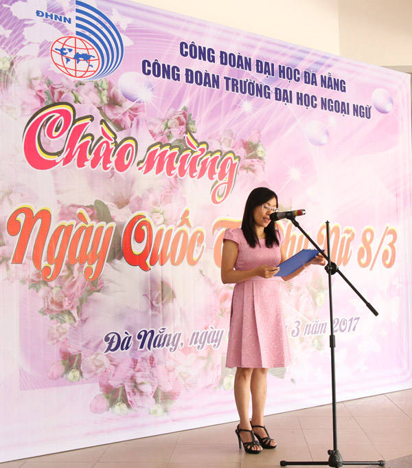 Cũng tại chương trình, ThS. Phạm Thị Thu Hương – Chủ tịch Công Đoàn Nhà trường phát biểu: “Vui mừng tự hào trước những kết quả mà Nhà trường đã đạt được trong thời gian qua, tôi mong rằng các chị em có mặt ngày hôm nay, trên cương vị công tác của mình phấn đấu, nỗ lực hết mình, đoàn kết tương trợ lẫn nhau, năng nổ , sáng tạo, nhiệt tình trong công việc để góp phần cùng tập thể Nhà trường thực hiện tốt chức năng tham mưu, tổng hợp, đề xuất kiến nghị các chủ trương, chính sách giải pháp giúp Công đoàn Trường nói riêng và Công Đoàn Đại học Đà Nẵng nói chung tiếp tục thực hiện thắng lợi nhiệm vụ chính trị đã đề ra.”