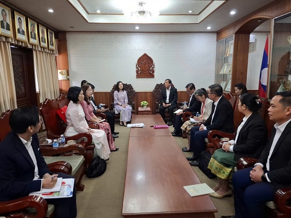 TS. Huỳnh Ngọc Mai Kha và Thứ trưởng Samlane Phankhavong trao đổi tại buổi làm việc