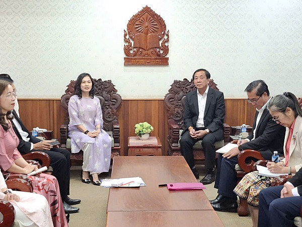 Trao đổi với Đại sứ Nguyễn Minh Tâm, Phó Hiệu trưởng Huỳnh Ngọc Mai Kha đã chia sẻ chương trình làm việc của Đoàn tại Thủ đô Viêng Chăn cũng như tại các tỉnh Trung và Nam Lào. Thay mặt lãnh đạo Nhà trường, TS. Huỳnh Ngọc Mai Kha cũng chia sẻ kết quả đào tạo tiếng Việt cho LHS Lào sang học tại Việt Nam theo chương trình hợp tác giữa thành phố Đà Nẵng với các địa phương của Lào.