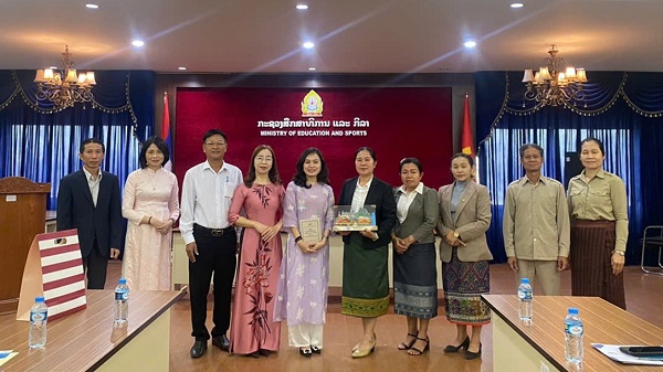 Trao tặng quà và chụp ảnh lưu niệm tại Bộ GD&TT Lào