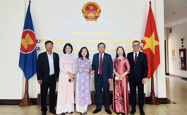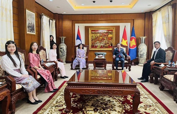 Chiều cùng ngày, Đoàn cũng đã đến thăm và làm việc với Đại sứ quán Việt Nam tại CHDCND Lào. Đại sứ Nguyễn Minh Tâm chào đón và hoan nghênh chuyến công tác của Đoàn nhằm tăng cường hợp tác giáo dục giữa hai nước Việt – Lào, qua đó góp phần duy trì và gắn kết tình hữu nghị giữa hai quốc gia.