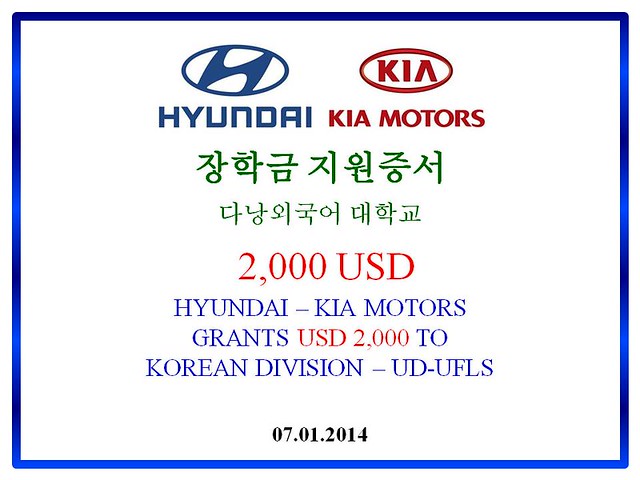 Tập đoàn HYUNDAI và KIA MOTORS tặng suất học bổng trị giá 2000 USD cho tổ tiếng Hàn, Khoa Nhật – Hàn – Thái