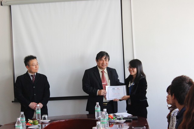 Trong buổi giao lưu, giáo sư Park Sang Sun cũng tỏ lòng biết ơn đến ban lãnh đạo nhà trường, các thầy cô tổ tiếng Hàn, cùng với các sinh viên tham gia chương trình lần này. Ông cũng nhấn mạnh rằng tất cả mọi chi phí tổ chức chương trình lần này đều do tập đoàn Hyundai và Kia Motors, Hàn Quốc tài trợ. Đồng thời, thay mặt cho tập đoàn Hyundai và Kia Motors, ngài Park cũng đã trao tặng suất học bổng trị giá2000 USD cho tổ tiếng Hàn, khoa Nhật – Hàn – Thái, Đại học Ngoại Ngữ.