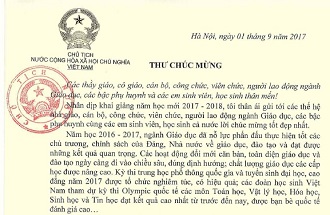 Trang chủ / Tin tức / Thư chúc mừng của Chủ tịch Nước