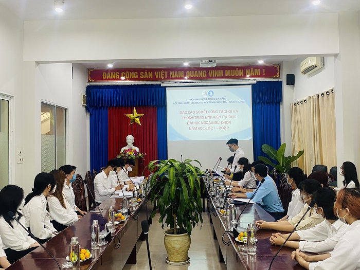 Tại buổi làm việc, đồng chí Lê Hữu Bảo Nguyên – Chủ tịch Hội Sinh viên Nhà trường đọc bản báo cáo sơ kết công tác Hội và Phong trào sinh viên Trường Đại học Ngoại ngữ – Đại học Đà Nẵng năm học 2021-2022. Đây là dịp để đoàn công tác Hội Sinh viên Việt Nam thành phố Đà Nẵng đánh giá các nội dung chương trình công tác Hội và phong trào sinh viên của Trường Đại học Ngoại Ngữ – ĐHĐN trong năm học 2021-2022, để từ đó nắm bắt tình hình thực tế, nhu cầu, nguyện vọng của cán bộ, hội viên, sinh viên nhằm phát triển và nhân rộng những mô hình hoạt động Hội tiêu biểu; khắc phục những tồn tại, hạn chế trong chỉ đạo thực hiện nghị quyết, chương trình, kế hoạch công tác.