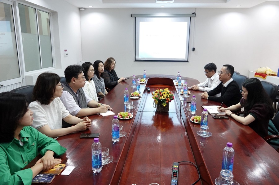 Tiếp đón đoàn có TS. Nguyễn Hữu Bình – Phó Hiệu trưởng; TS. Nguyễn Hữu Anh Vương, Trưởng Phòng Khoa học và Hợp tác quốc tế; TS. Nguyễn Ngọc Tuyền, Phó trưởng khoa Khoa Ngôn ngữ và Văn hóa Hàn Quốc.